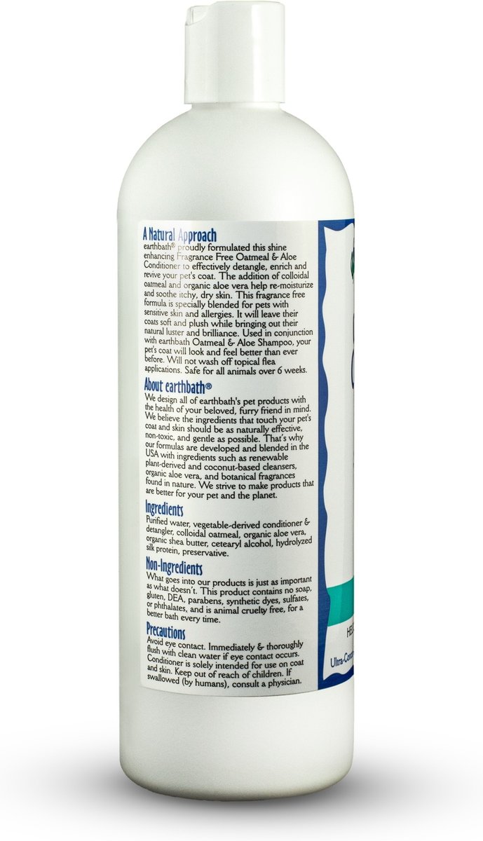 Earthbath Oatmeal & Aloe Fragrance Free Dog & Cat Conditioner, 16-fl oz bottle