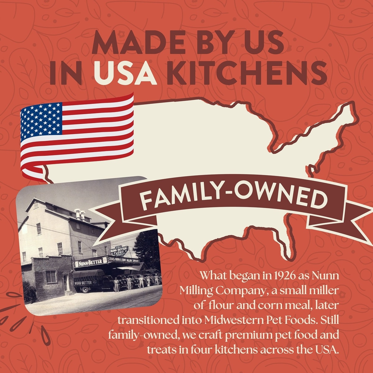 Midwestern Pet Foods, manufacturer of Earthborn Holistic, was founded in 1926 as a small milling company. This fourth-generation family-owned business specializes in making trusted, nutritious dog and cat foods, biscuits, and treats. Earthborn Holistic offers a range of well-balanced options for environmentally conscious pet parents, and all of their dry recipes are made in the USA.