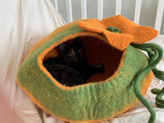 Both my cats like to burrow under the blankets so I thought they might enjoy this bed. If they didn’t use it, it’s so cute I was going to keep it anyway and use it to store yarn. Luckily they both love it so much I may need a second one. It’s very well made - thick and sturdy and holds its shape well. If they squish it down, it pops up again without a problem. It’s also very warm - reached into pet my girl and it was like a little sauna. Package also came with a tiny bag of catnip and a little felted wool ball.