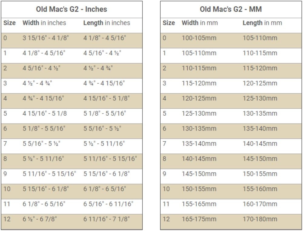| 10 | 5 15/16 - 6 1/8 | 6 1/8 - 6 5/16 |