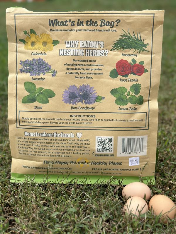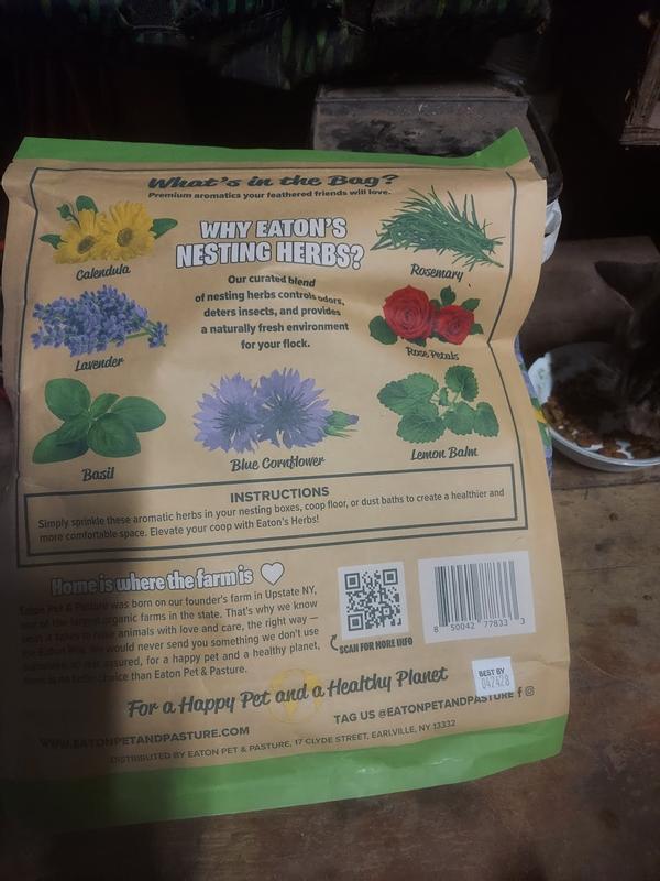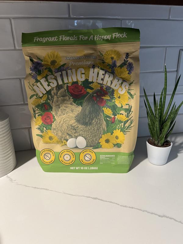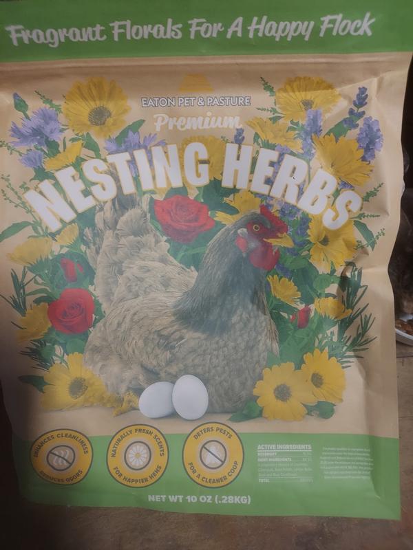 I really enjoyed the Eaton Pet & Pasture Aromatic Blend Chicken Nesting Herbs. The inviting aroma was calming to me as I opened it and began to sprinkle it inside my hens nesting boxes. What a lovely smell. I also sprinkle some in their outdoor run and they seemed very interested. I would definitely recommend this product to spruce up your hen house or nesting boxes. I would have given it a 5 out of 5 star but the price seems a bit high for the amount.
