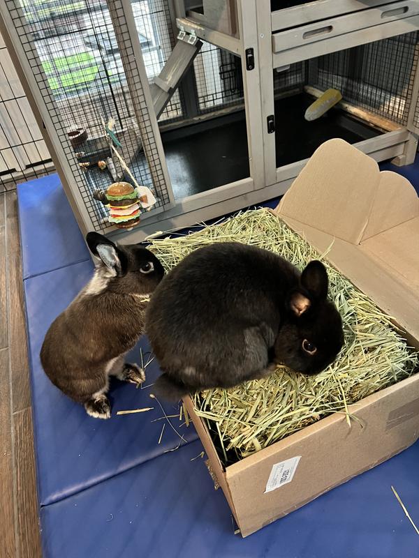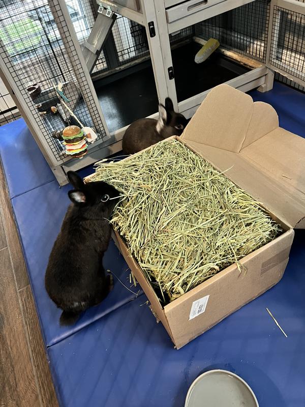 I was very excited about this hay for my bun bun. It is beautiful looking hay. Unfortunately my bun wasn't very interested in it. Once I realized it is a mix of Timothy hay AND Orchard grass I knew why. She has been fed strictly Western Timothy hay for many years and I assume she was used to that type? However, I left the box on the floor near her enclosure and every once in a while she will pull some out.