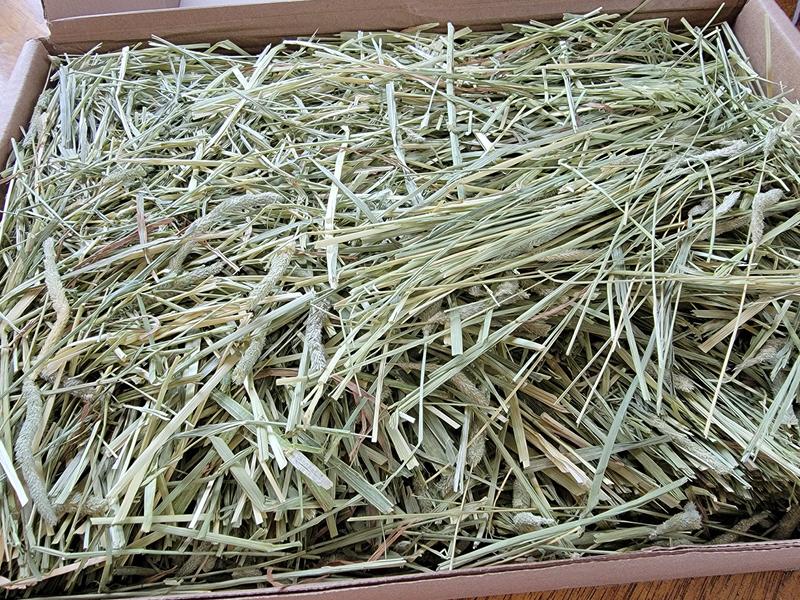 The timothy hay was a bit above average quality. Soft and green but still a bit of long stalks. The packaging was my biggest concern. The hay was packed in the cardboard