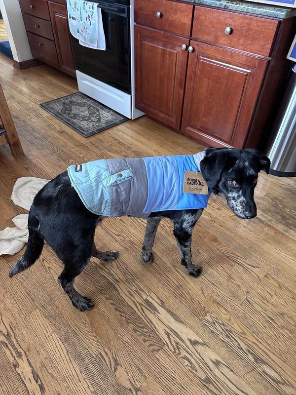 Eddie Bauer Flora Colorblock Puffer Dog Parka, Grey/Blue, X-Small