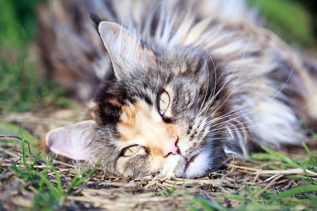 One of the largest domestic breeds of cat, Maine Coon males weigh between 12 and 18 pounds, with females coming in between 10 and 14 pounds, making them as large as many toy dog breeds. In addition to their dog-like size, Maine Coons are devoted, playful and loving to their owners. They can be reserved towards strangers, however, and require regular brushing to keep their thick coats free of mats.