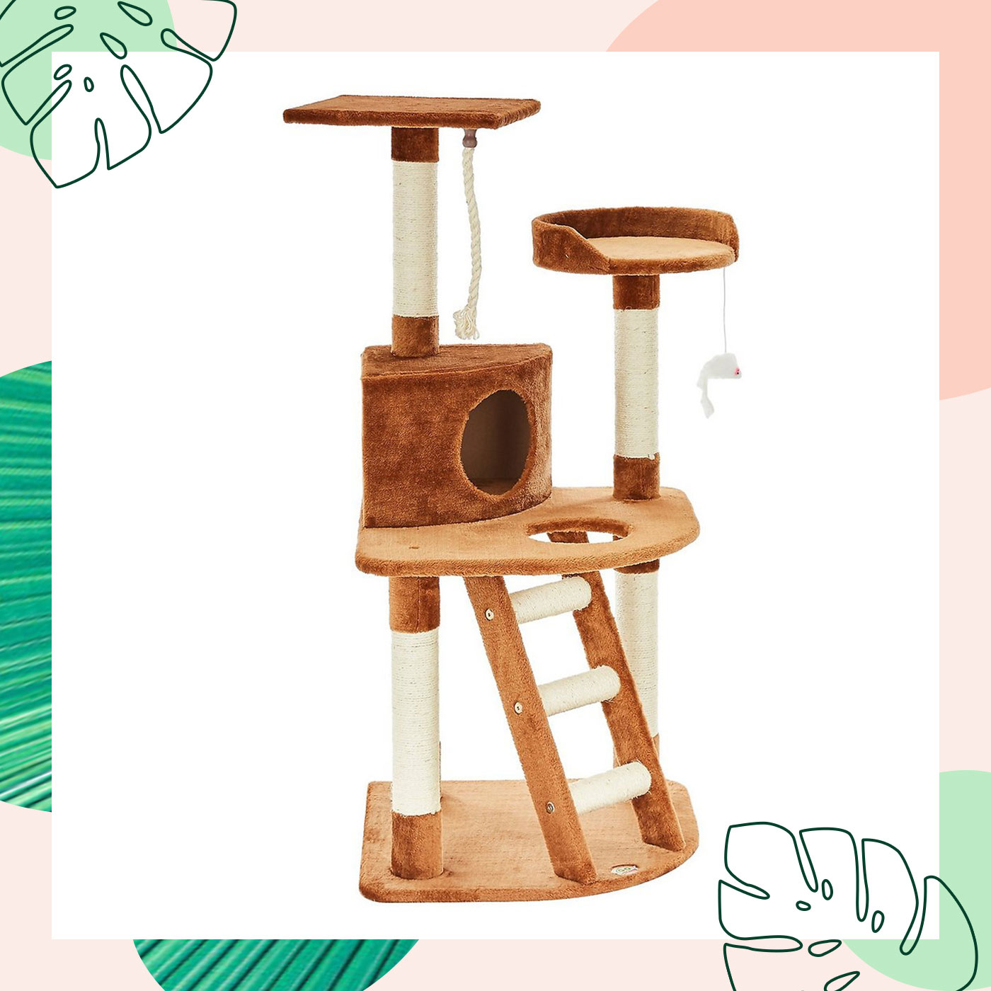 Ladders and ramps give your cat a secure way to climb between levels of their cat tree. Sometimes they’re covered with carpet. In other cases, they double as scratchers, like on this Go Pet Club 48-in Classic Sisal Posts Cat Tree Condo.