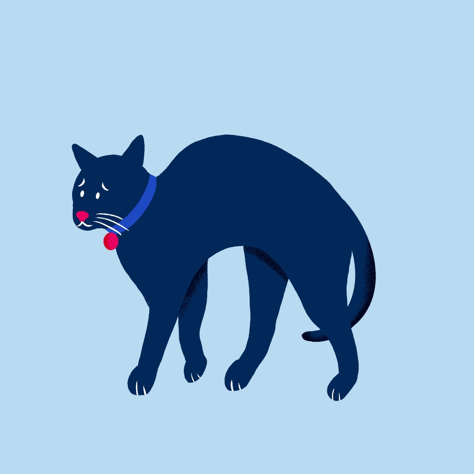 A cat with an arched back may be uncomfortable or scared; think of the classic Halloween cat silhouette of the cat with their back arched and their fur puffed. That’s clearly a cat that’s been spooked. However, a cat’s back can also arch while being petted. But in that case, it’s probably obvious the cat is just enjoying some cuddles.