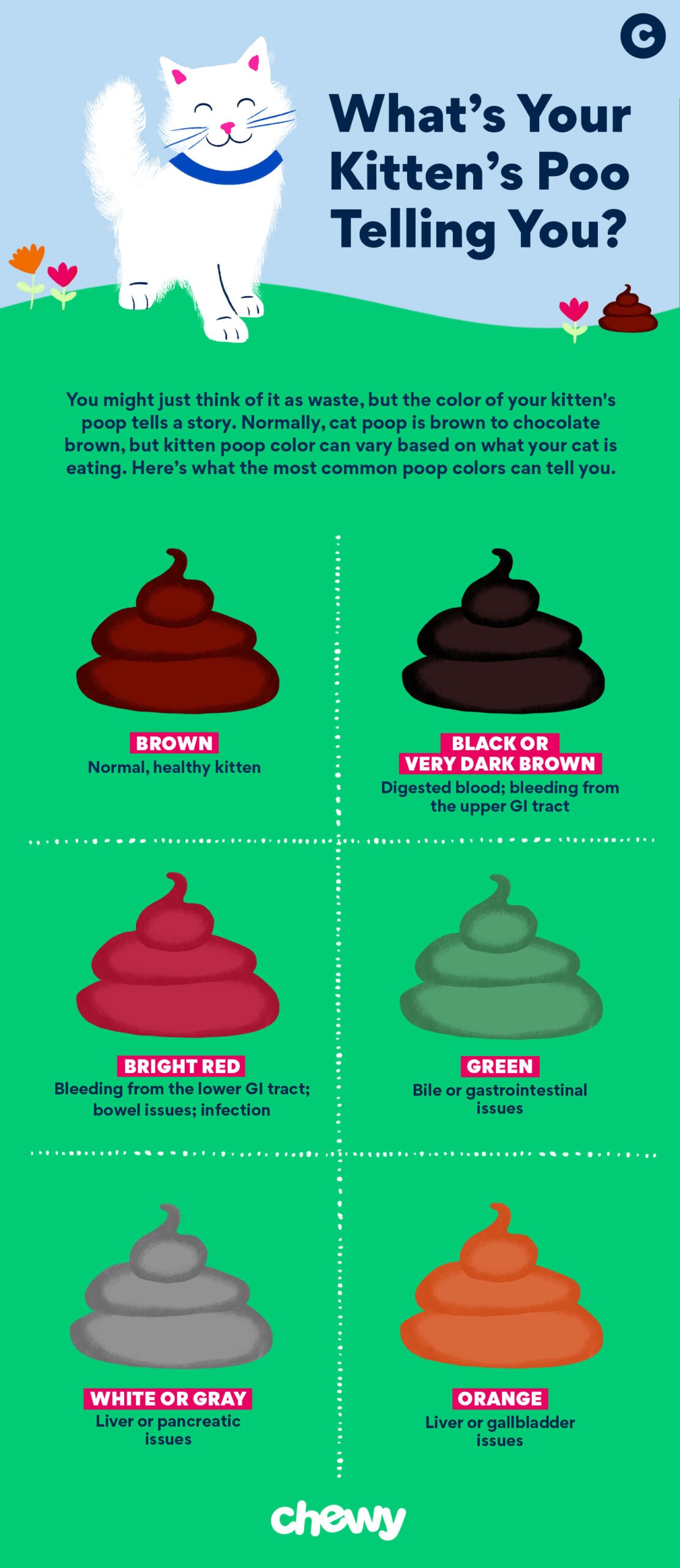 Ideally, most kittens should go once per day, says Dr. de la Navarre. While the color of the stool can vary with the diet, healthy kitten stool is typically brown in color and has a firm but soft consistency, similar to the texture of Play-Doh.