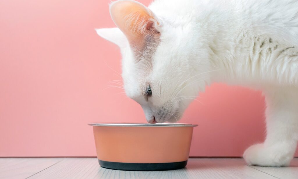 Make sure to feed your cat a vet-recommended wet or dry food from a trusted brand, like Hill’s Science Diet or Royal Canin.