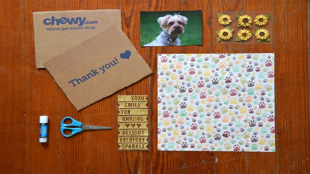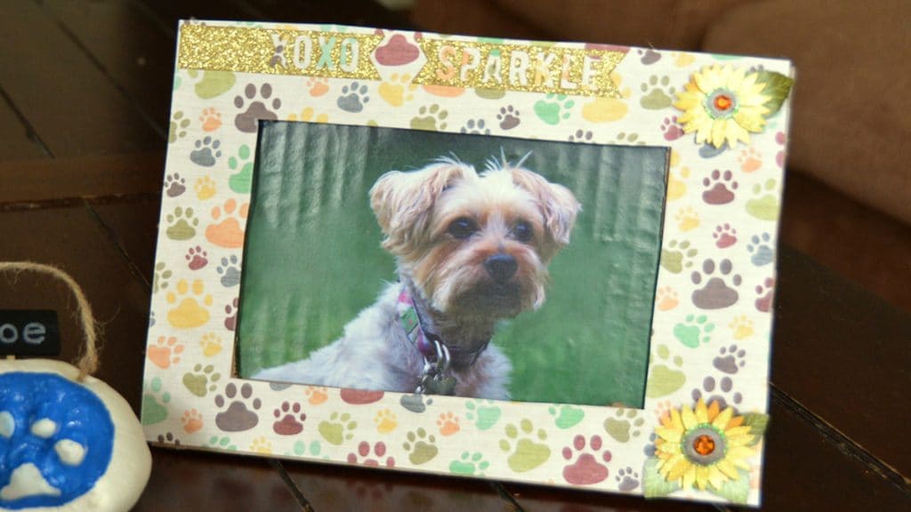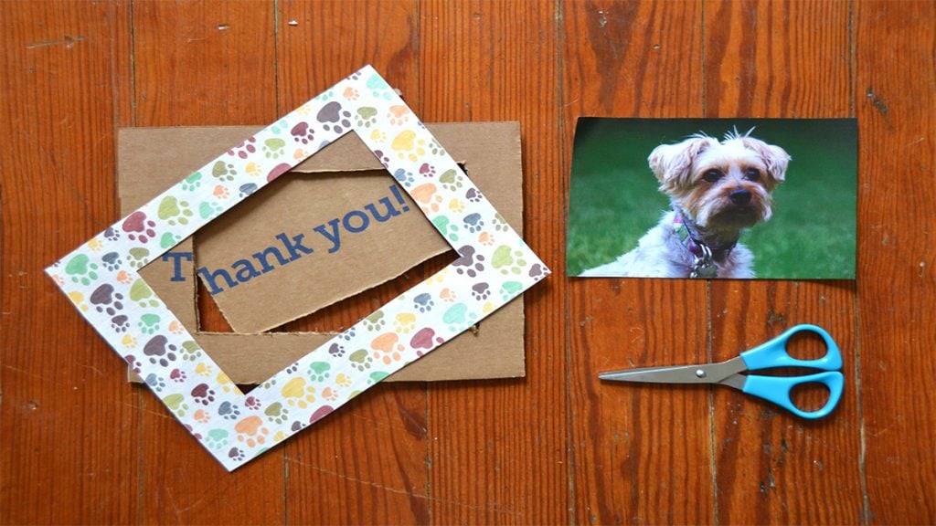 - Decorate the scrapbook paper border with stickers to complement your fellow dog lover’s personality or fellow cat lover’s.