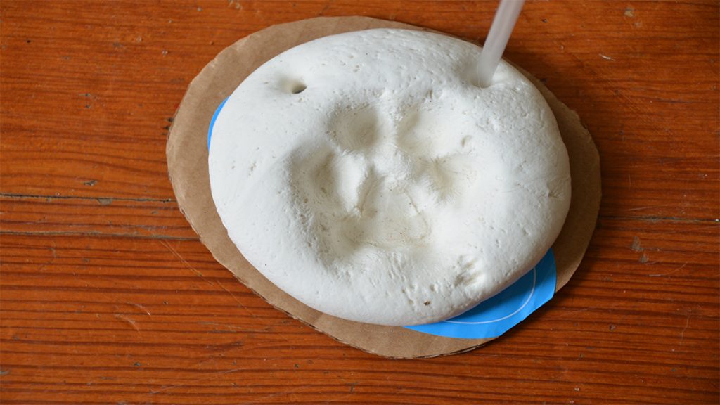 - Using a clean straw, make two holes in the pliable compound away from the paw print on the upper right- and left-hand corners.