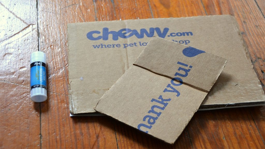 - Place it onto a piece of cardboard (hint: empty Chewy boxes). Do not press down.