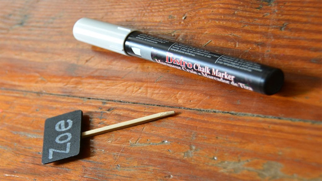 - Write the pet’s name on the mini chalkboard pick using a chalk marker.