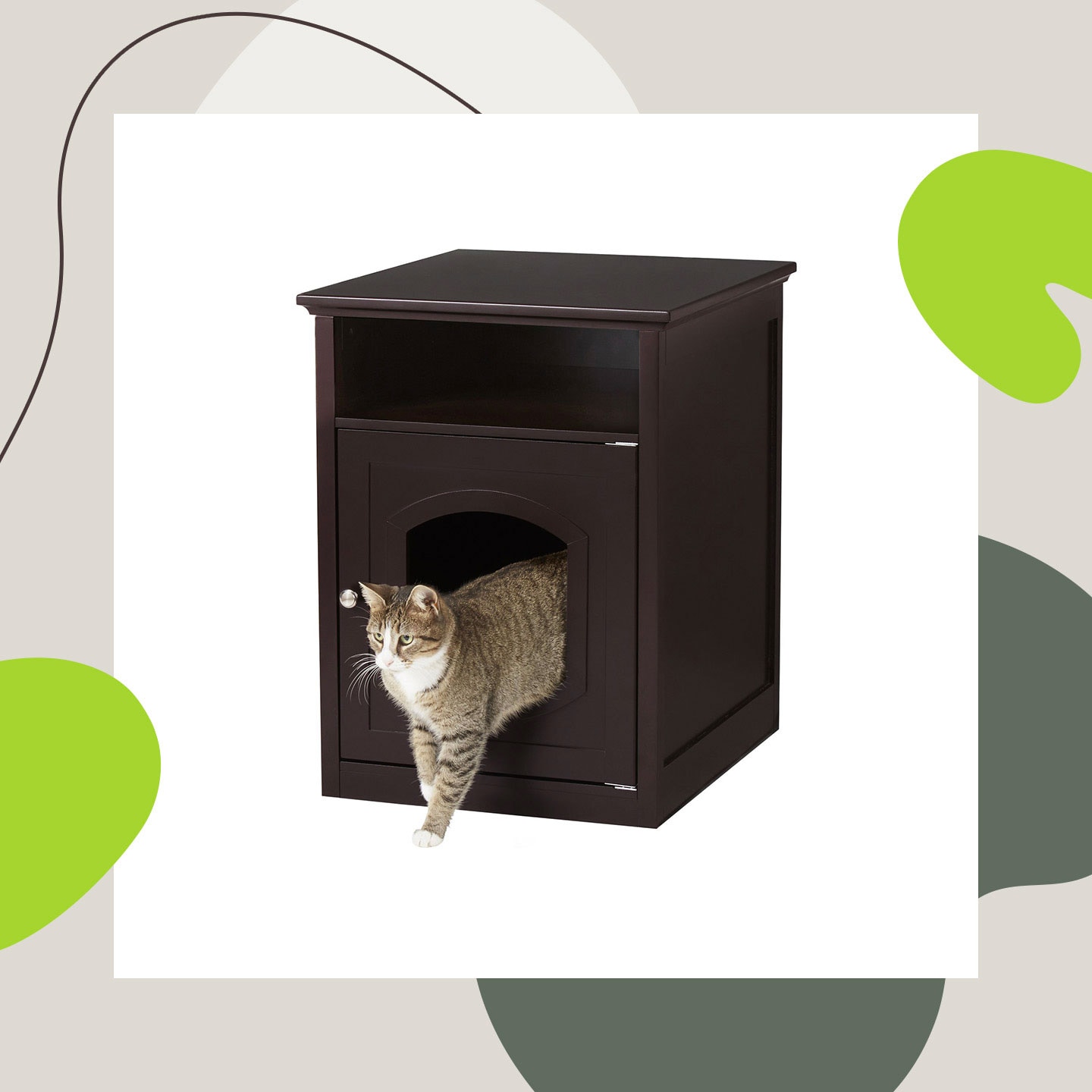 Litter boxes aren’t the cutest cat accessories around, so it’s no wonder cat parents want to hide them from guests, especially if you have a small apartment and putting the litter box out in the open is your only option. Plus, cats tend to prefer privacy when using the bathroom. That’s where litter box furniture comes in. These stylish pieces do double-duty—serving as end tables or cabinets while concealing the litter pan inside. “Most cats don’t mind litter box furniture, as long as it’s large, and isn’t too confining at the top as to retain odors,” says Dr. Mitchell. The Frisco Decorative Side Table Cat Litter Box Cover, for example, is nice enough to put in any room, has a cat-sized opening that lets Kitty slip in and out, and includes a small shelf to house supplies.