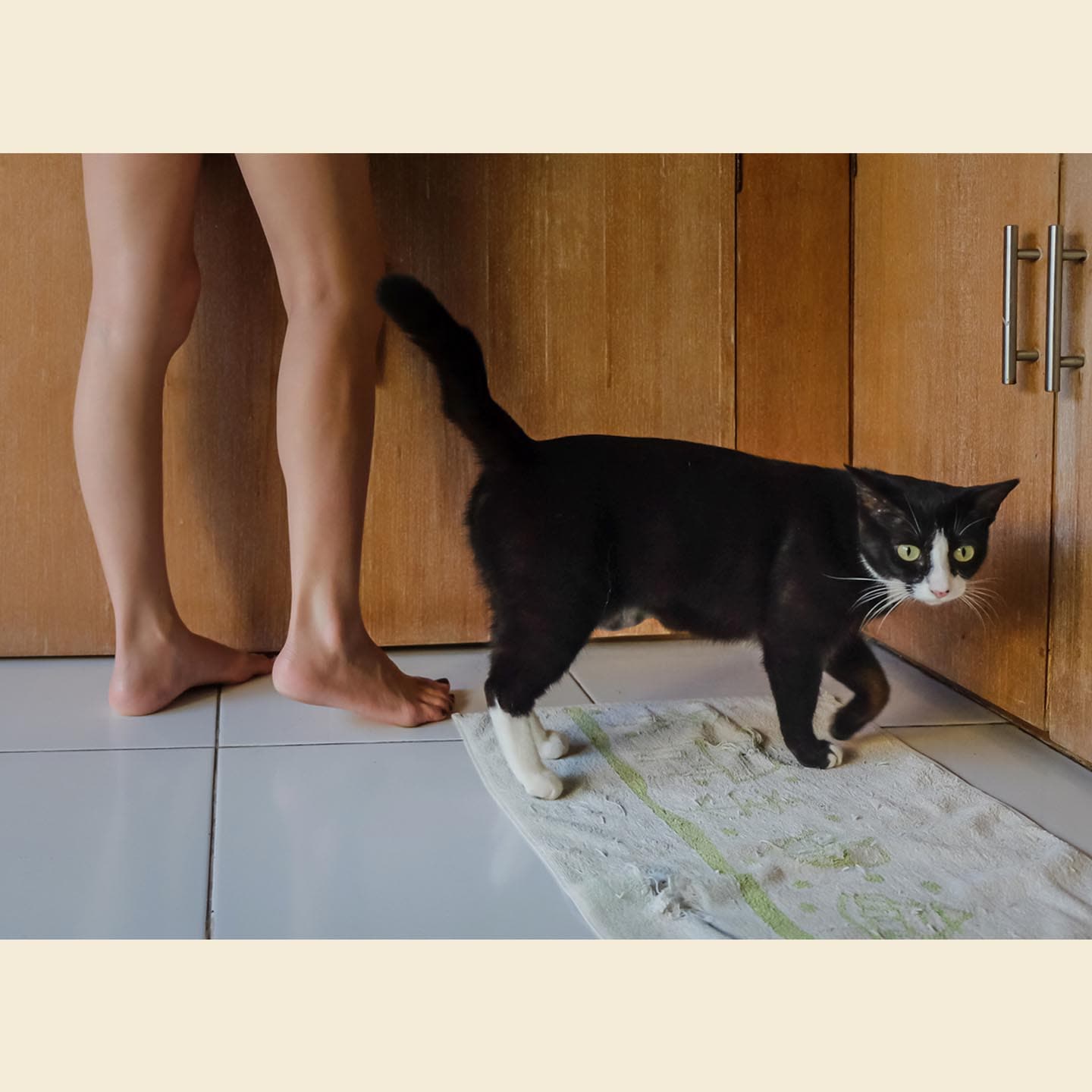 Brushing up against you and marking you with their whiskers is a form of kitty love, says Morgan. They usually do this to let everyone know you’re theirs.