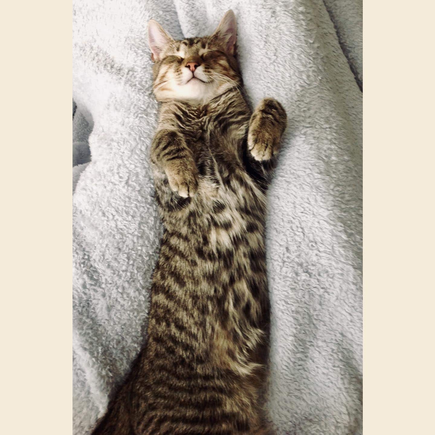 This is the ultimate display of trust and cat love. It’s not that often that a kitty will roll over and expose their belly. When they do though, Bloom suggests noting whether their body looks relaxed or tense, because some cats roll onto their backs to get their claws ready for attack.