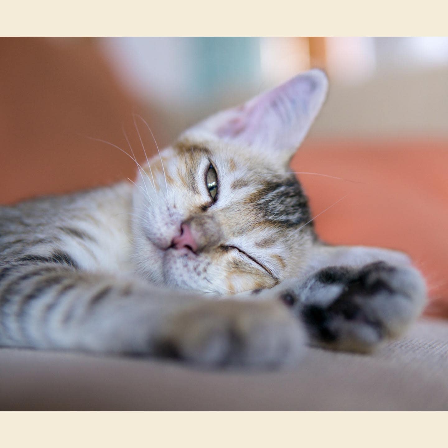 Cat purrs are another sign of comfort and contentment, especially when cats are resting near you or when you’re petting them.