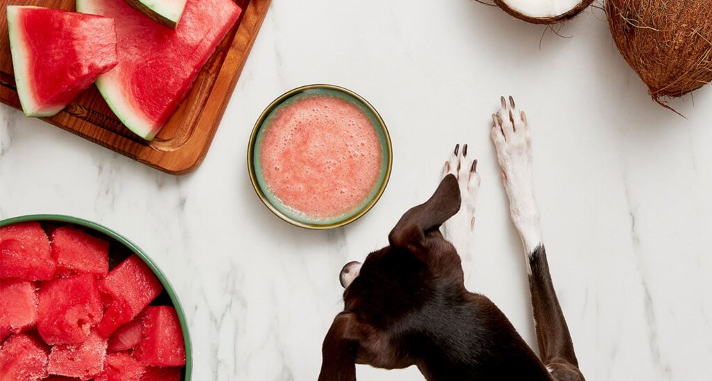 What’s a mutt mocktail, you ask? It’s a lickable, cocktail-inspired, alcohol-free and totally canine-friendly watermelon DIY dog treat (shaken, not stirred, please!). Made with just two summery-staples ingredients, no mixology credentials are required here! Just whip it up in a blender, pour into a bowl and serve.