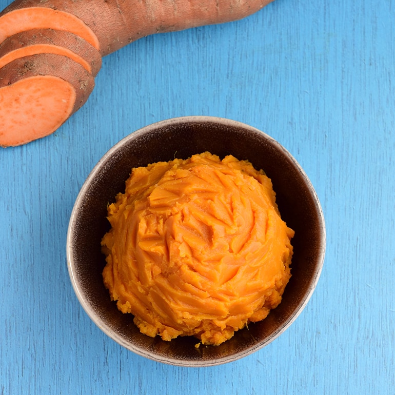 - Mashed sweet potato: 1 to 2 tablespoons (trying mixing in your dog’s dry dog food!)