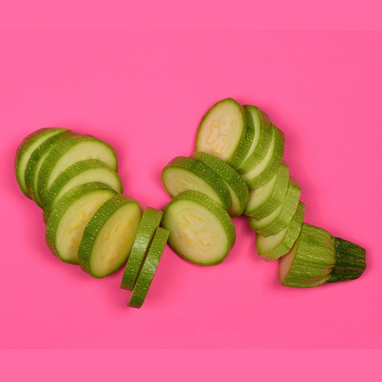 - Wash thoroughly, peel, cut in half and remove seeds.