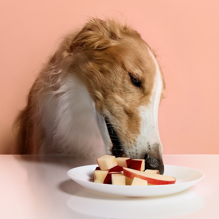 - How to prepare: Remove the core, stem, and seeds because apples can be toxic, are hard to digest, and may cause your dog to choke. Then, cut into bite-size pieces.