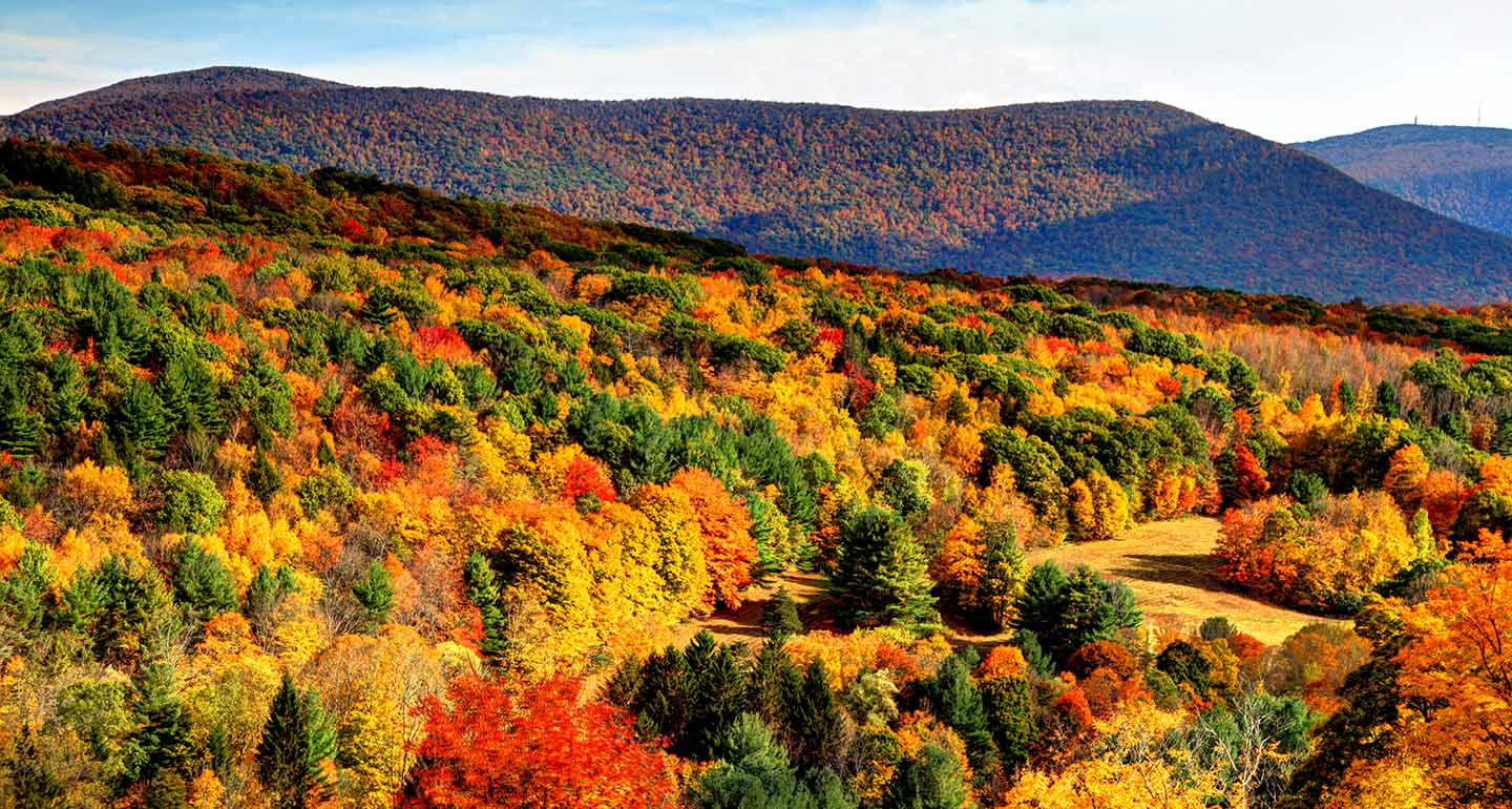 For Berkshires leaf peeping at its finest, head to the top of Mount Greylock, the highest peak in the state. (Unless you’re up for a serious hiking challenge, you’ll want to drive to the summit.) From there, head along one of the Berkshires’ many dog-friendly trails. You’ll be able to take in the breathtaking views of Vermont’s Green Mountains and even the Taconic Mountain Range that spreads across New York state and New England.