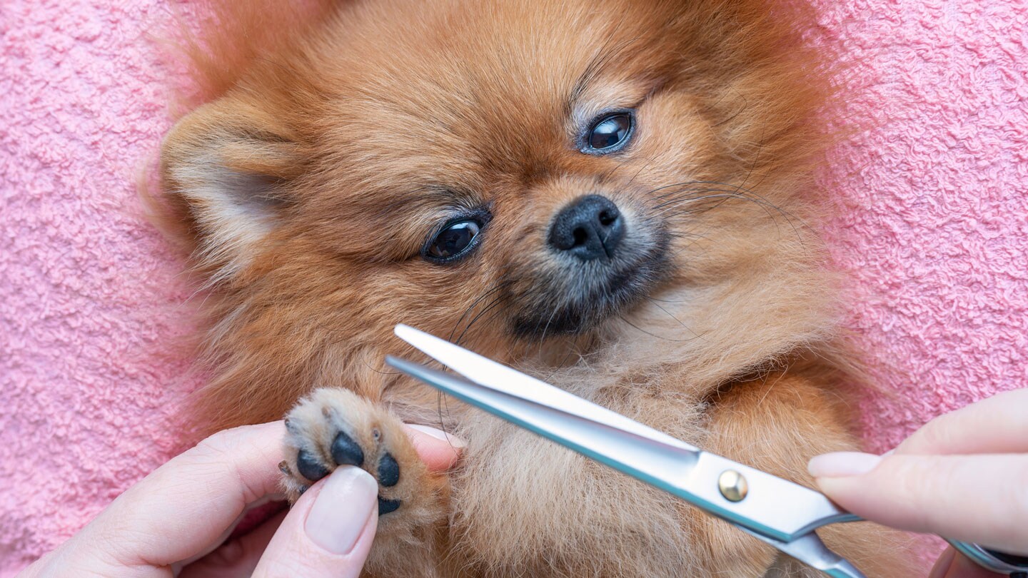Connor recommends using straight shears to trim hair over the eyes, around the potty area and the feet. For folks who are less experienced with trimming, opt for rounded-tip shears.