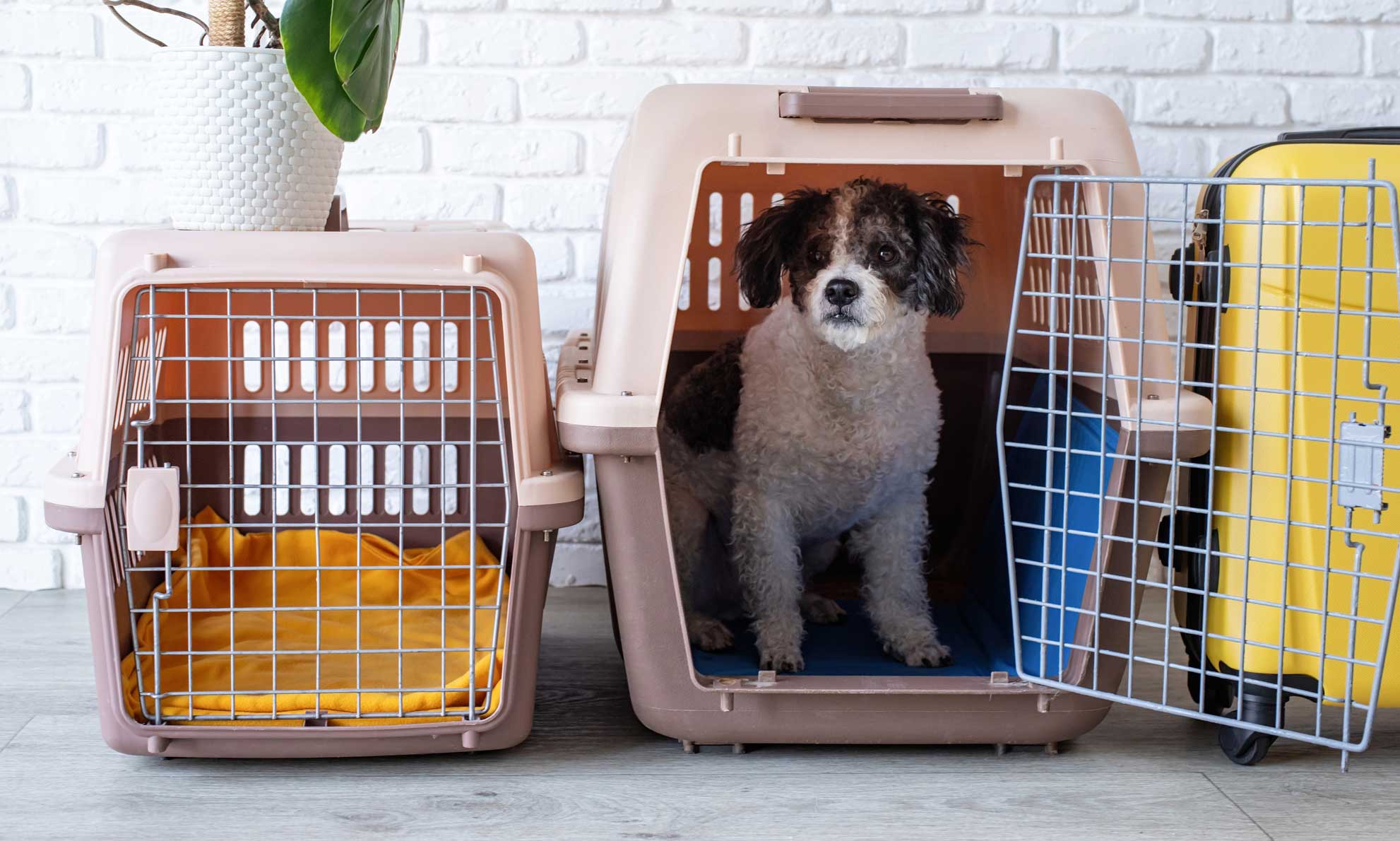 - Create a designated “safe space” or a crate. Make sure your anxious dog has comfortable bedding. Make this a place where they can go when stressed.