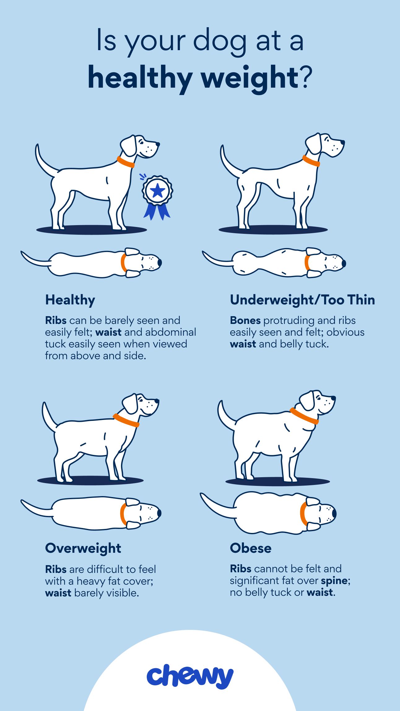 Another tool to assess your dog’s weight at home is the Body Condition Score (BCS).