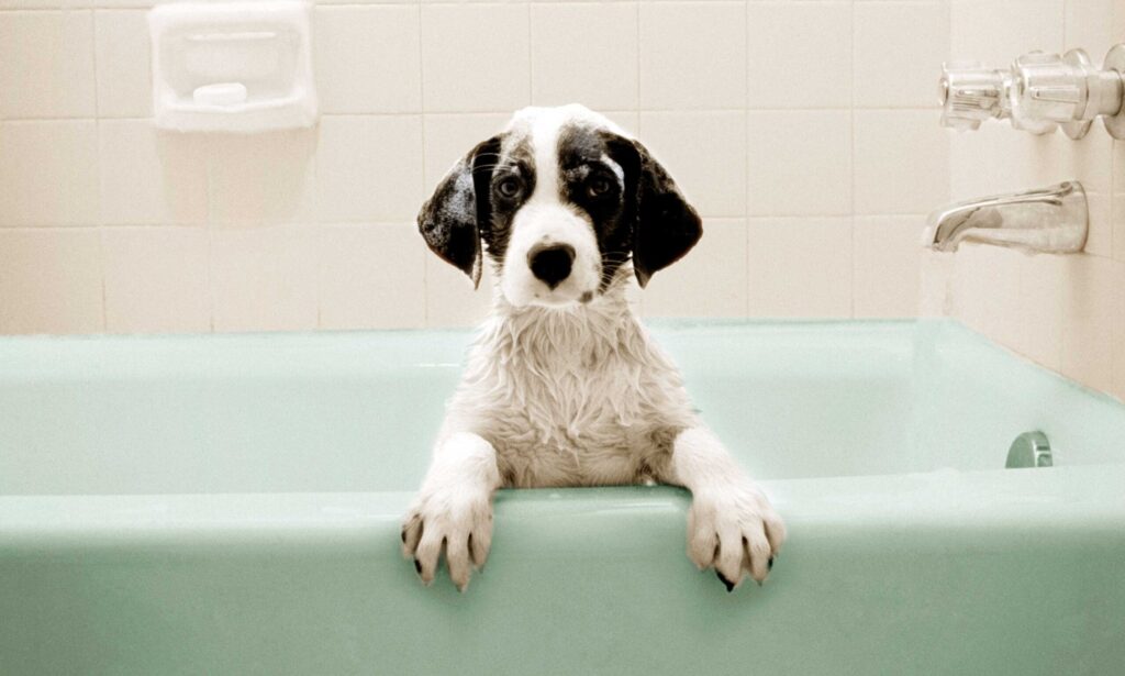 Some people may choose to wash their dog outside, while others may choose to wash them in the bathroom tub. Either way, don’t let your dog inside while you’re preparing their bath, as the strong odor can quickly permeate your home’s interiors, making it harder to remove later.