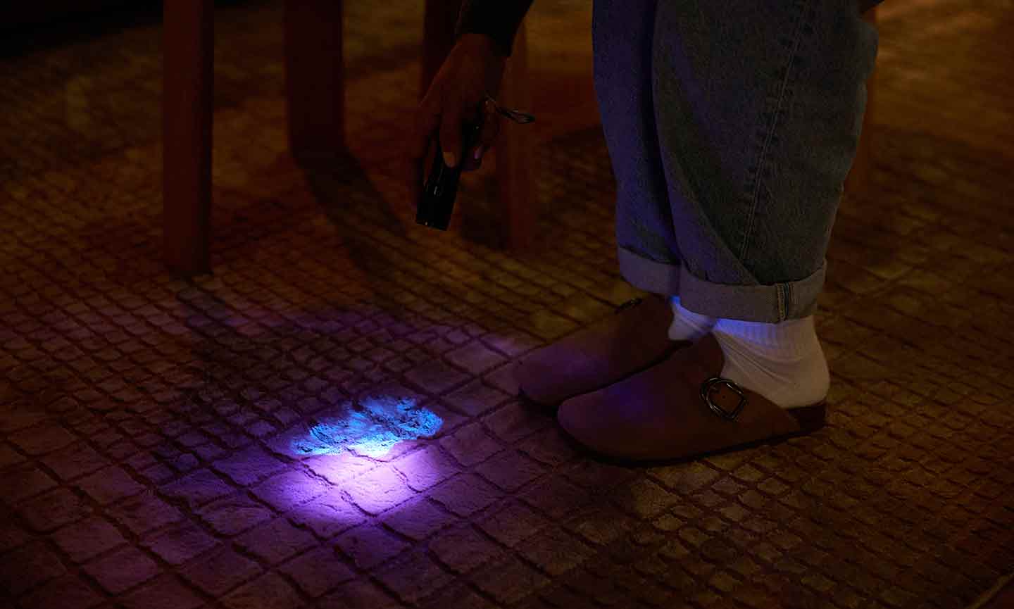 If you’re unsure where your dog went potty inside the house, try using an ultraviolet light (commonly known as a blacklight) to find the soiled areas. It will illuminate any hidden pet stains that need your attention.