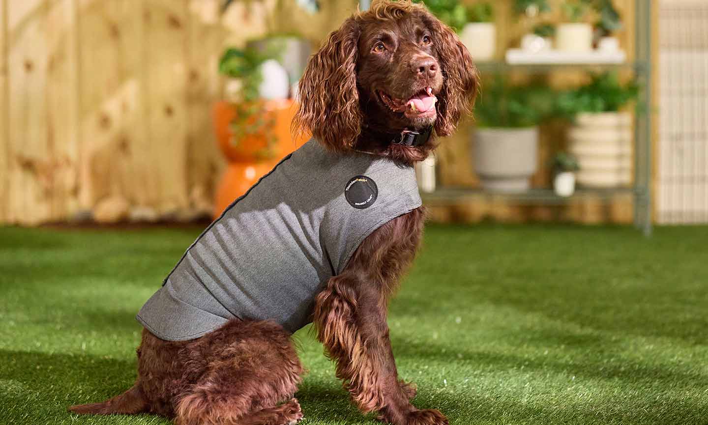 To further help with anxiety, she suggests trying a ThunderShirt if your pup likes to wear clothes.