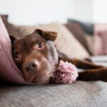A: Consult your veterinarian right away if your dog is having trouble exercising or seems to be in pain. Dr. Stelow says that groaning or an inability to do routine tasks—like jumping up on the sofa—might be the result of an injury or the onset of arthritis.