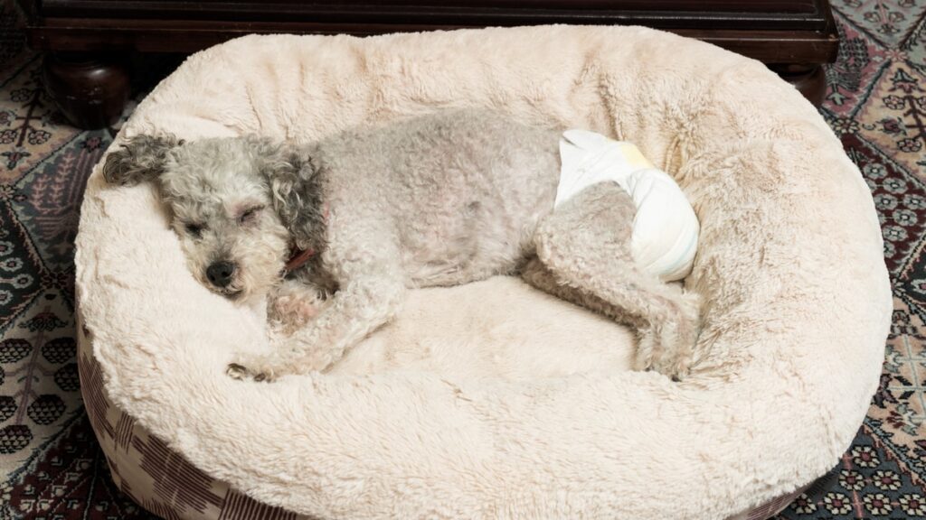 • Wet spots on your dog’s bed or favorite places to sleep might be a sign that they have a bladder issue.