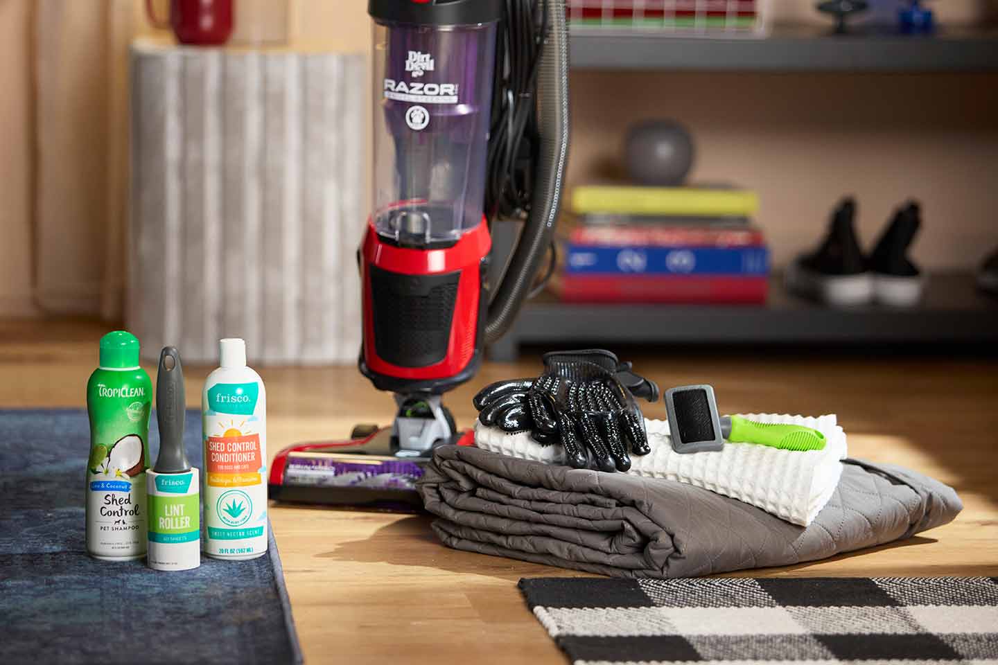 Set the broom aside and break out a vacuum equipped for tackling pet hair, like the Shark Rotator Pet Upright Vacuum.