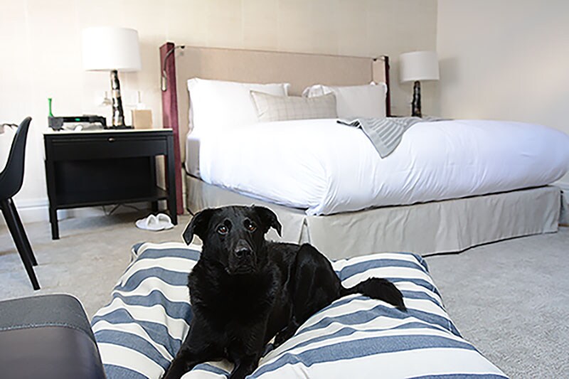 Our room was both modern and stylish with a large fireplace, marble bathrooms and, of course, a huge comfy dog bed for Bear, as well as food and water dishes. We settled in nicely, and over the course of our stay at the pet-friendly lodging, we felt entirely at home. If we wanted to venture out and grab a quick bite the concierge would arrange a walk for Bear, which would consist of a bellman taking Bear on a walk, letting him hang out in the front of the lobby to soak up attention from the staff and guests, and concluding with a delicious dog treat or two.