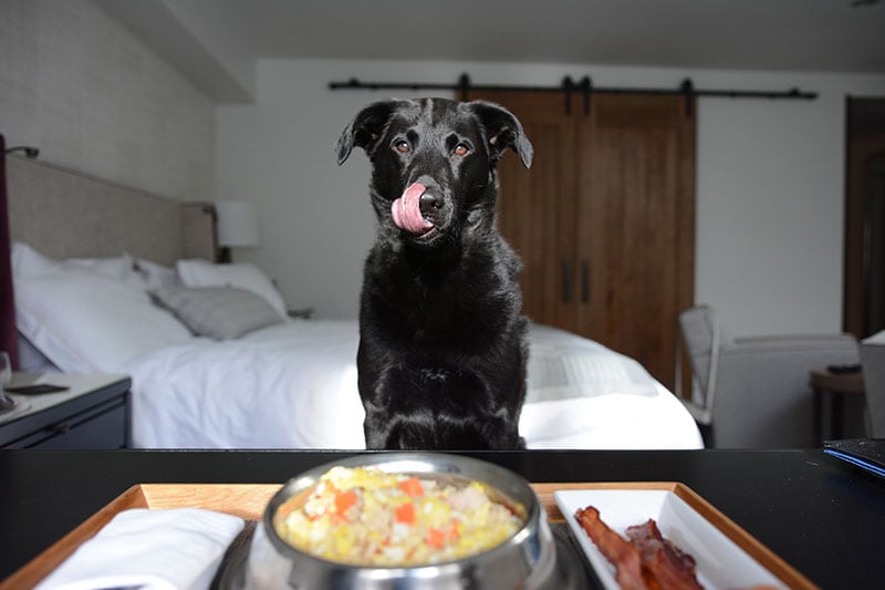 Bear also had the opportunity to try out The Little Nell’s Special Pet Menu. Choose from four different proteins—chicken, beef, or salmon—which all come with brown rice and scrambled eggs and is served in a doggy-friendly bowl. Needless to say, the meal was gone in under a minute and Bear has been picky ever since.