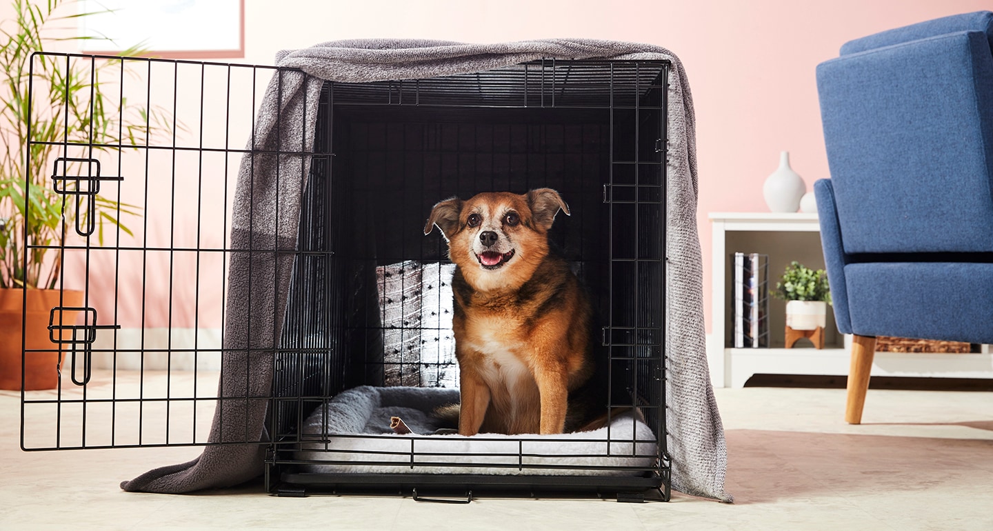 - A dog crate, like the Frisco single door dog crate