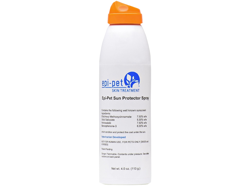 One of our favorites is the Epi-Pet Sun Protector Skin Treatment Spray, a non-greasy formula that allows you to spray in all angles.