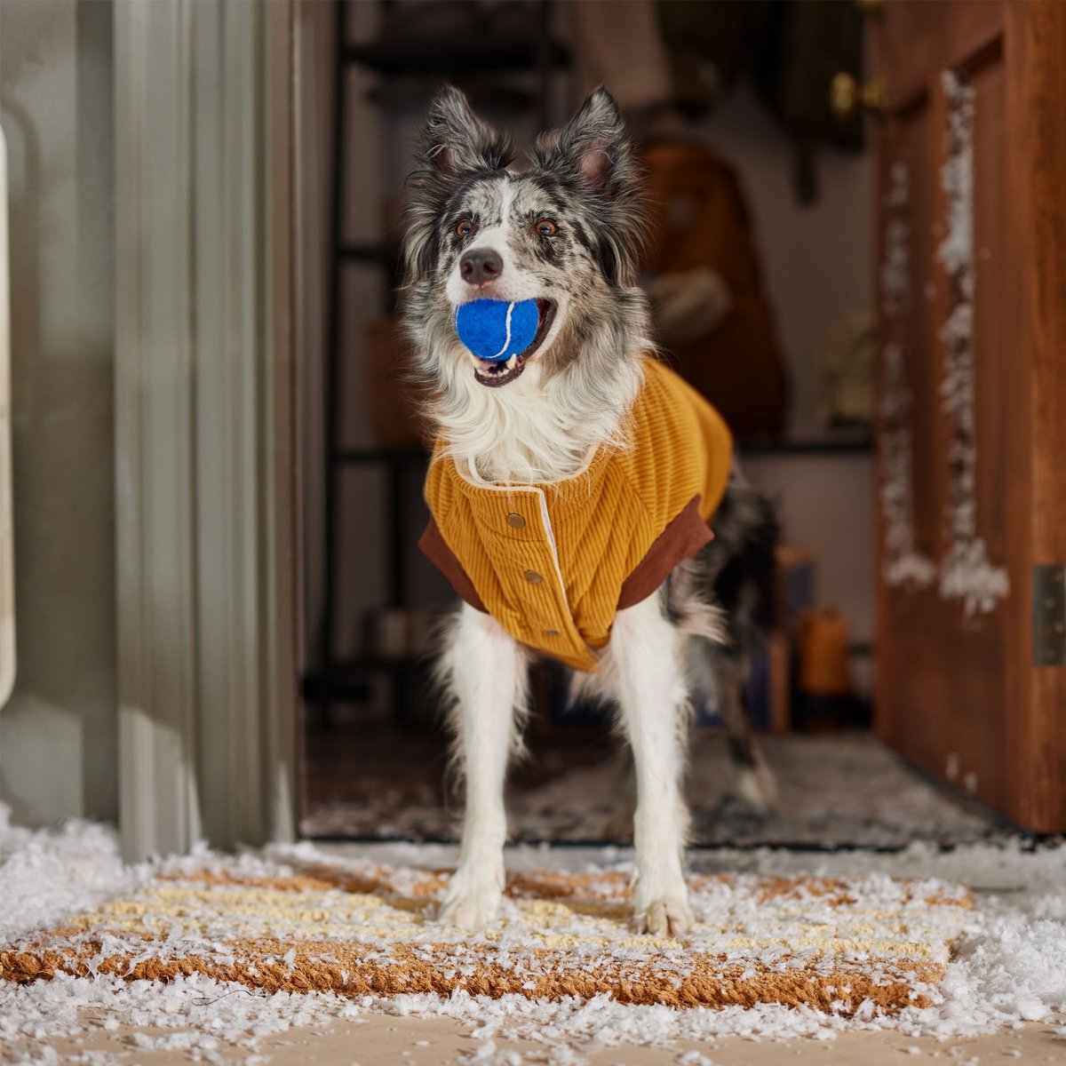 Speaking of corduroy, your pet’s new favorite coat might just be Frisco’s new lux corduroy coat. It boasts a polar fleece lining (for extra warmth) and a removable hood with a faux fur lining (for extra style points).