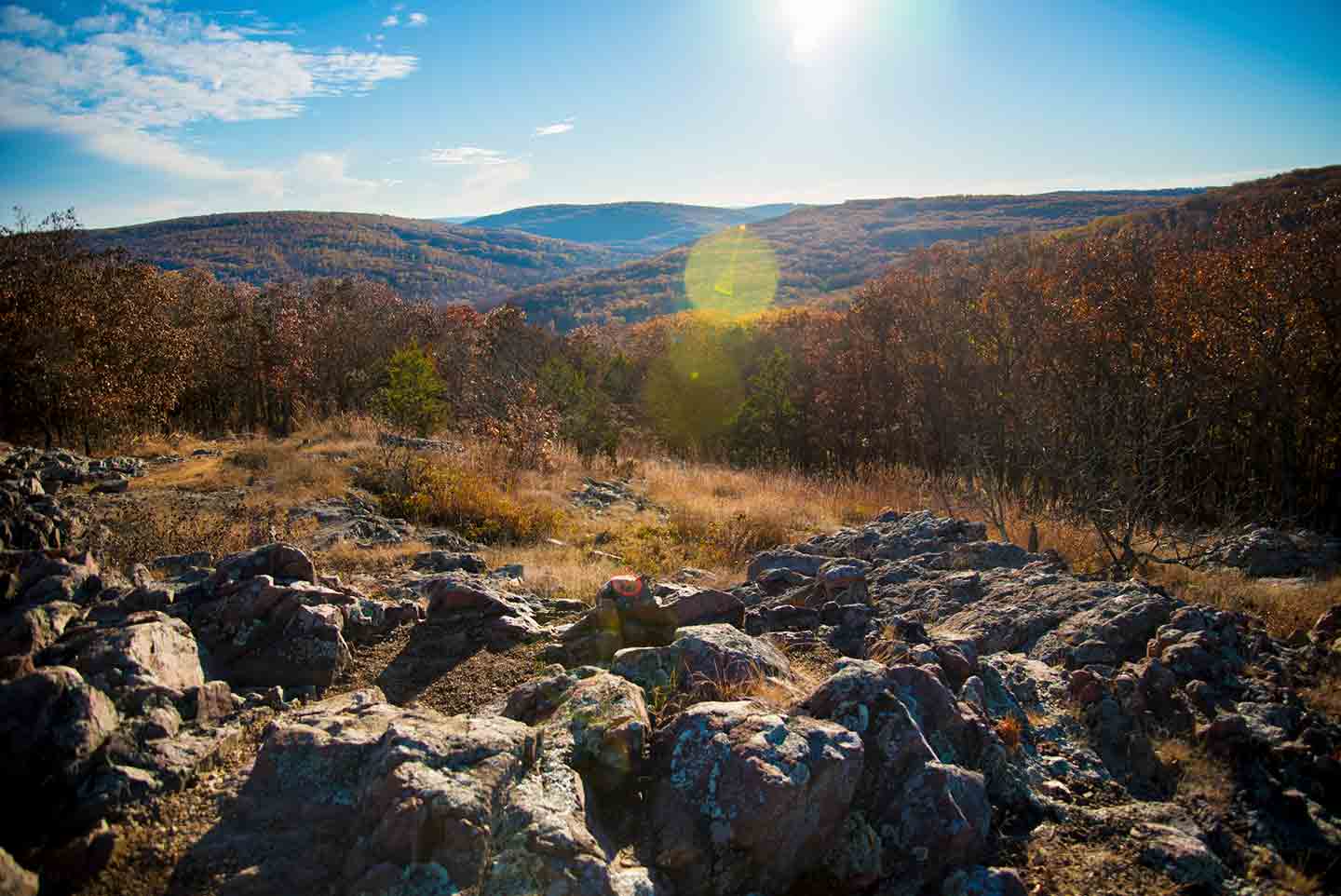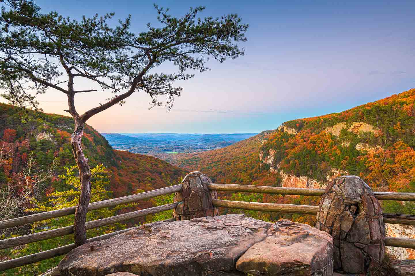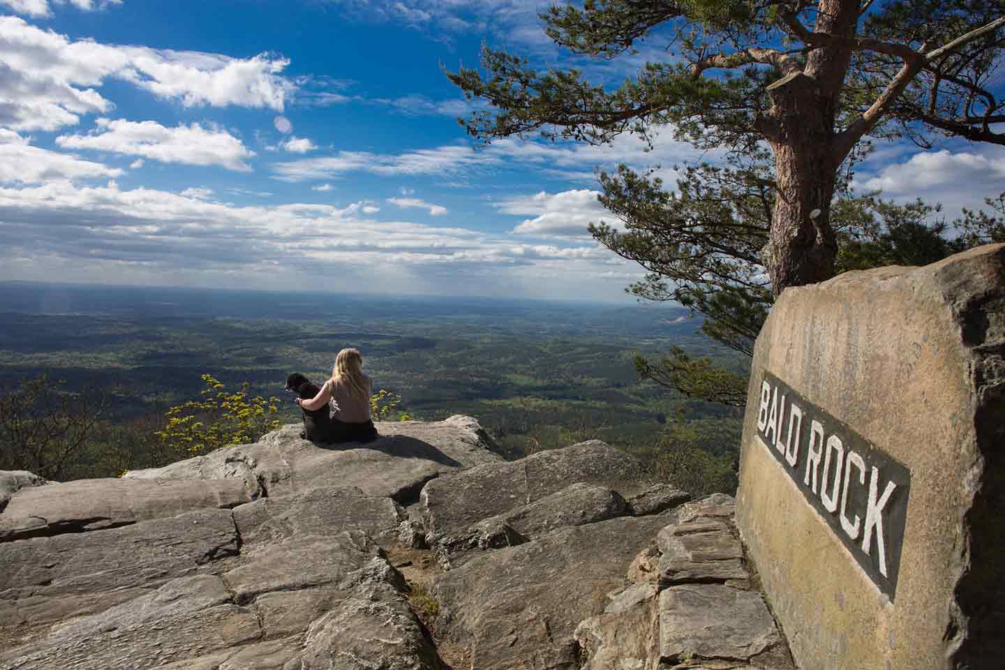 Great for pups and people of all ages and abilities, the short Bald Rock Trail offers a big reward for your effort. From the parking lot, the easy trail leads to Bald Rock Outlook, the highest point in Alabama, where you’ll enjoy stunning views of the forested hillsides under an expansive sky.