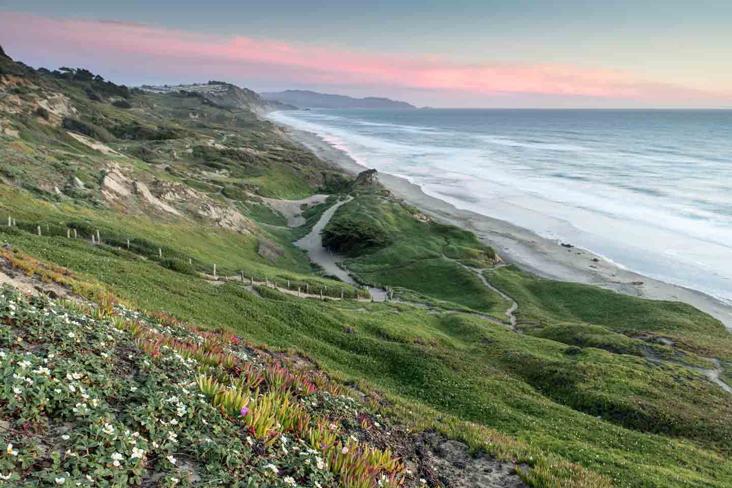 The quintessential California coast hike within driving distance of much of the Bay Area, Fort Funston offers your pup the chance to explore from either the designated dog-friendly trails on the dunes or along the wide strip of sandy coastline on the Pacific Ocean.