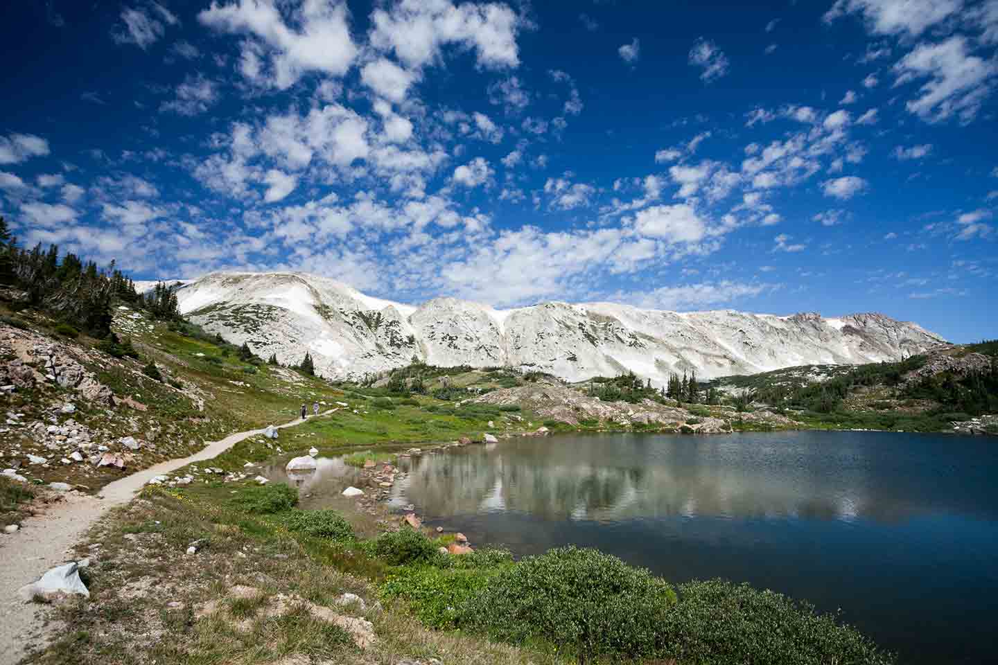 An all-day adventure in Wyoming’s Medicine Bow mountain range, this loop up to Medicine Bow Peak is punctuated by wildflower-filled meadows and high alpine lakes. Ideal for experienced trail dogs who are comfortable navigating tricky terrain, the hike traverses a steep ridgeline to reach the summit of Medicine Bow that is punctuated by boulder fields and rocky scrambles. For smaller, less-agile pups, you can still enjoy this hike by turning around below the summit. The views will still be grand, and your dog will enjoy the fresh mountain air, regardless of how far you go.