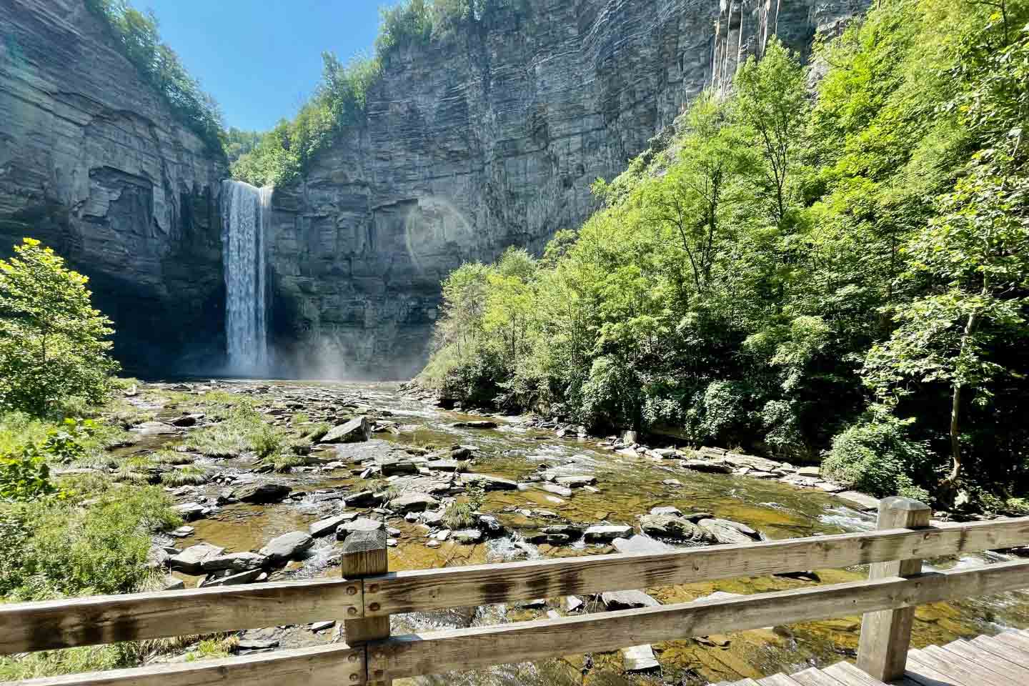 If your pooch loves chasing waterfalls, this trail will get their tail-wagging—and fill up your camera roll with some Instagram-worthy photos. The Falls Trail takes you past a whopping 21 free-flowing cascades, ranging in height from 11-foot cascades up to 94-foot Ganoga Falls. The terrain is challenging and the wet rocks can be slippery, so make sure you and your pup feel up to the task—sturdy footwear is recommended. Take your time and enjoy the views—there’s a new waterfall to see around nearly every corner.