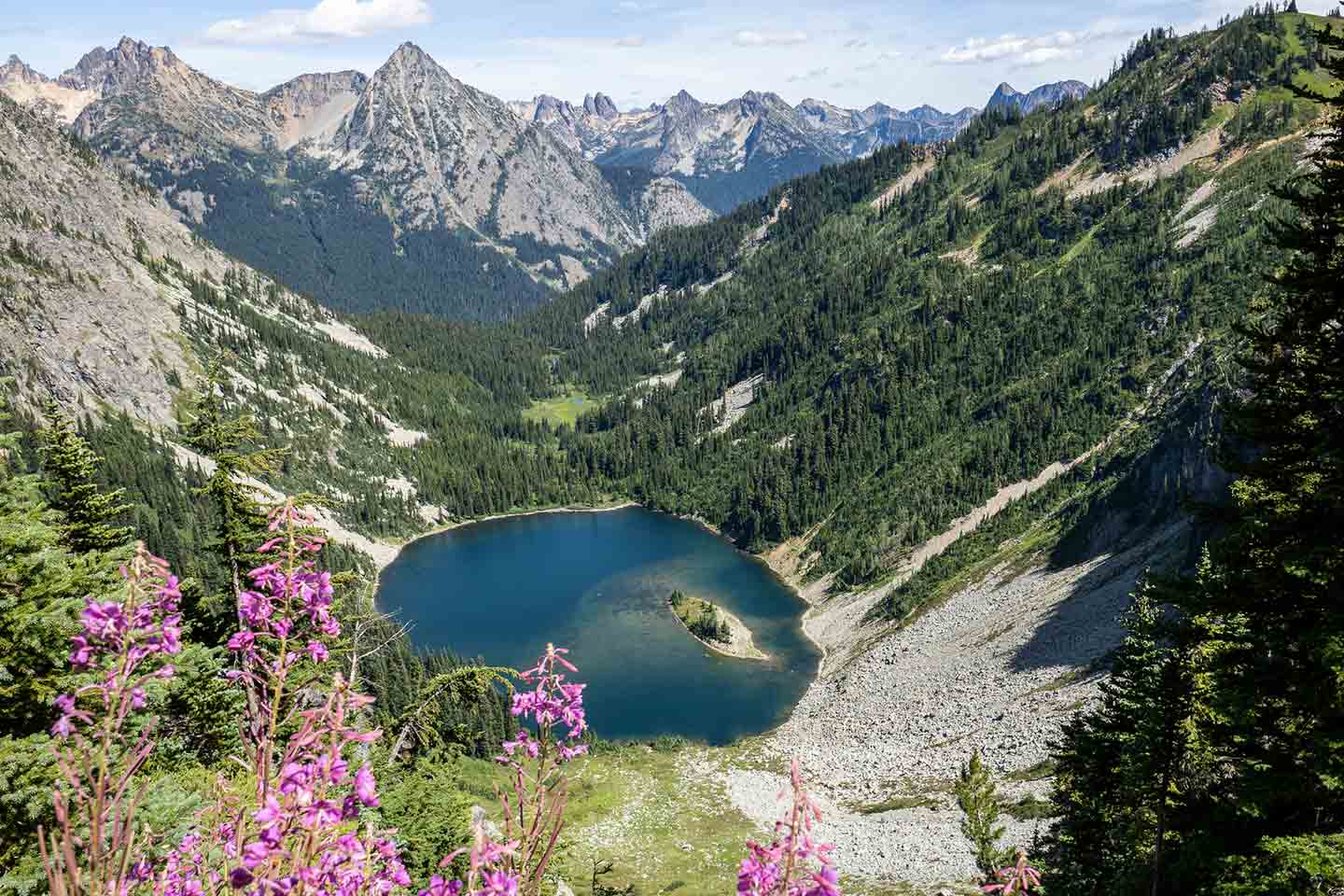If your trail dog is ready for a longer outing with some tough elevation gain, this breathtaking loop in the North Cascades will leave you with memories that will last a lifetime. Whether you catch the summer wildflowers or the fall colors, the mountainous backdrop won’t disappoint. The loop traverses two mountain passes—Heather and Maple Pass—where you’ll enjoy views of lakes, woods and wildflower-filled meadows.