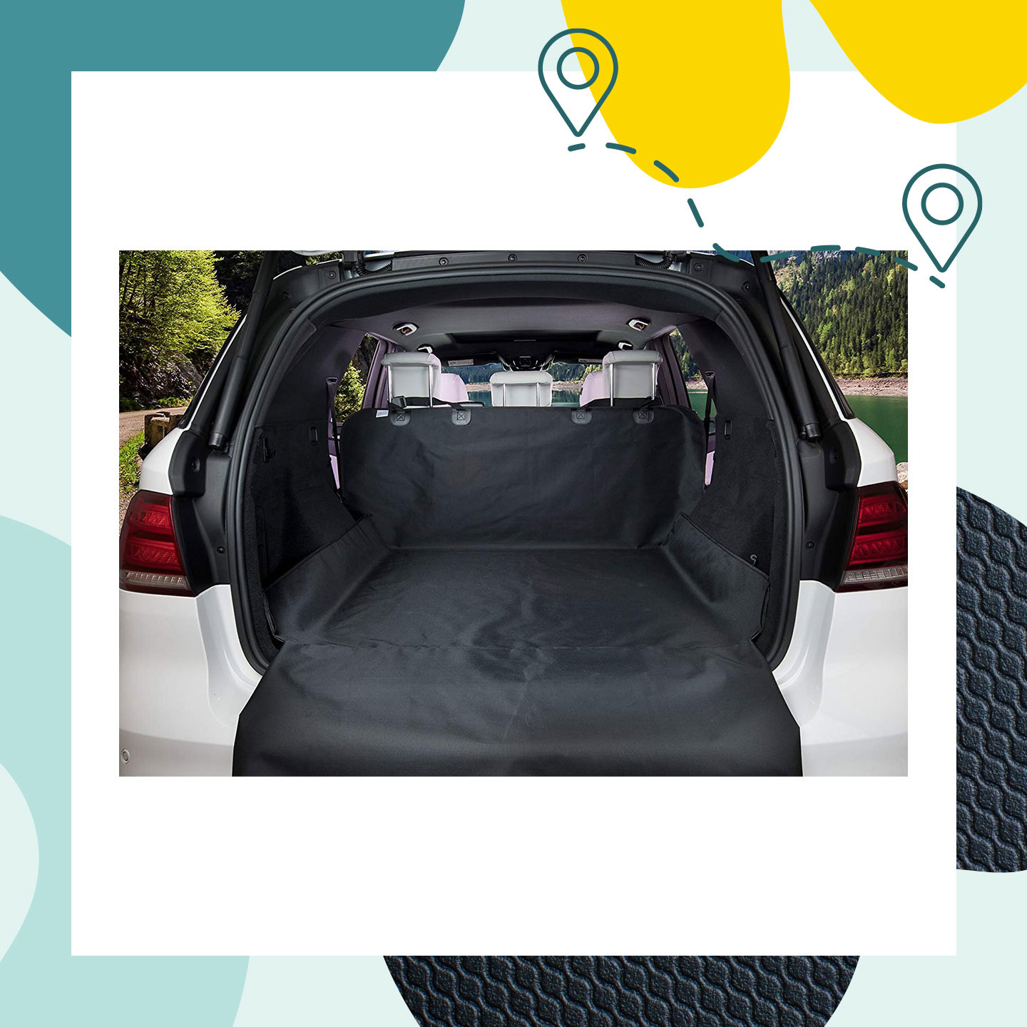 Cargo floor liners and SUV cargo liners are also super popular. Waterproof pet cargo liners, such as this one from BarksBar, will protect the back of your vehicle. “Dog cargo liners, which come in many sizes to fit different car configurations, are a great way to protect the cargo area and give your dog a large area, especially if, like us, you keep the back seat down,” says Permenter, who places dog beds over the cargo liner in her car. “It gives our two dogs room to rest and ride comfortably. The cargo liner even provides enough protection that we keep a water bowl in the cargo area for the dogs without worrying about the occasional sloshing.”