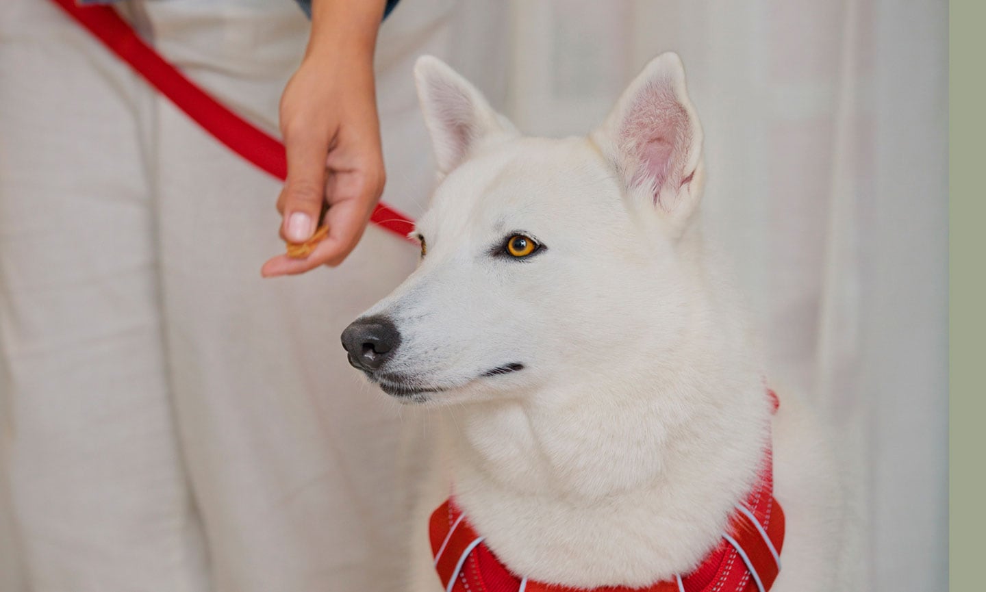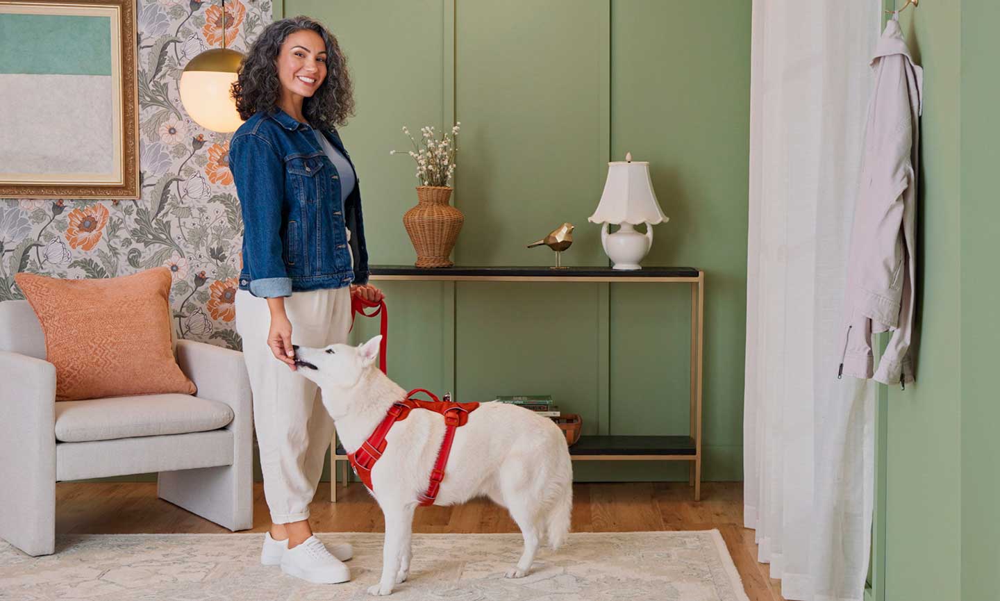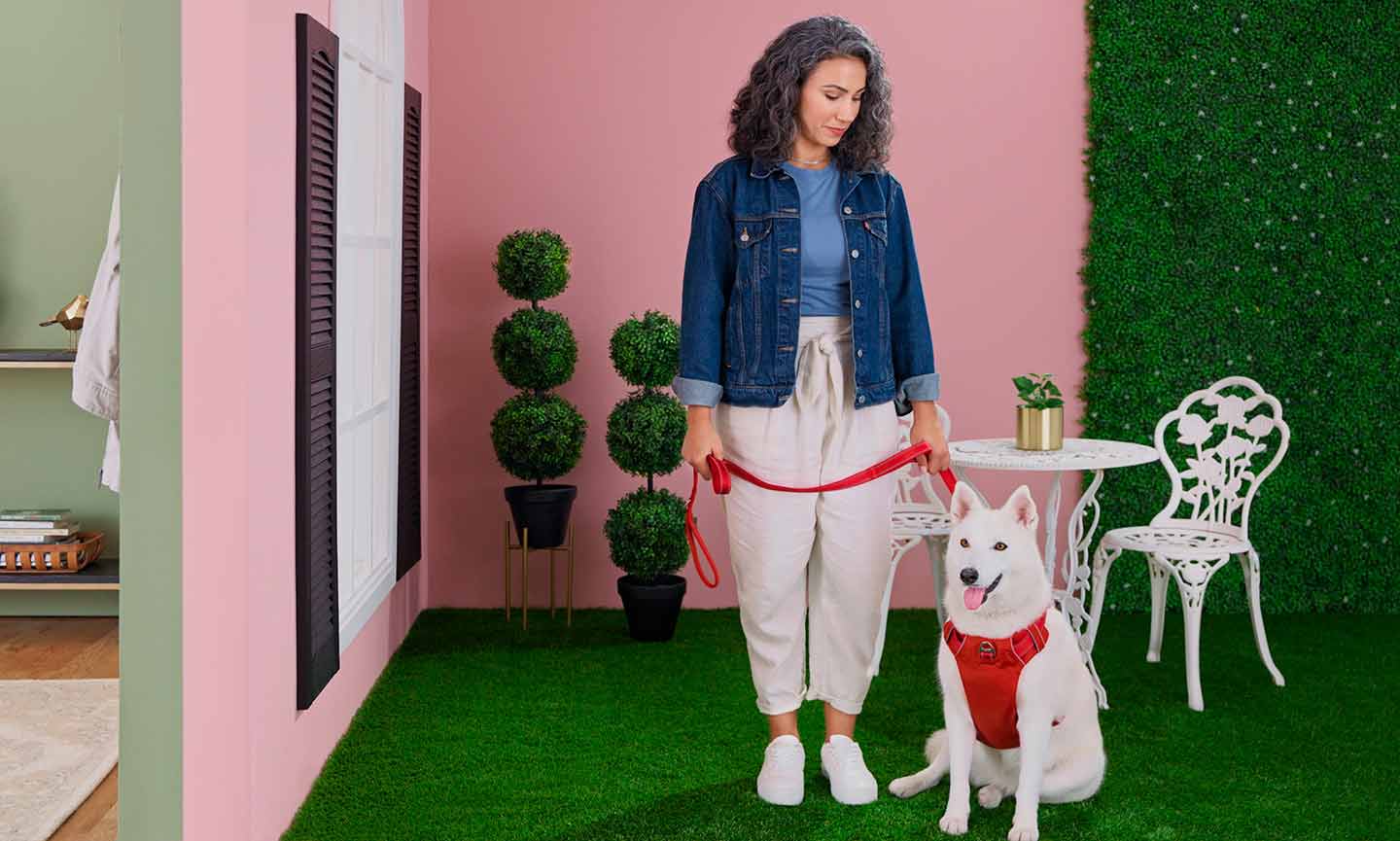 Pro tip: Having trouble getting your dog to wear their harness? Use a treat to lure your dog’s head through the neck hole, and continue feeding treats at each stage of the harnessing process: one when the harness goes on, another when you clip the harness, and a third when you attach the leash.