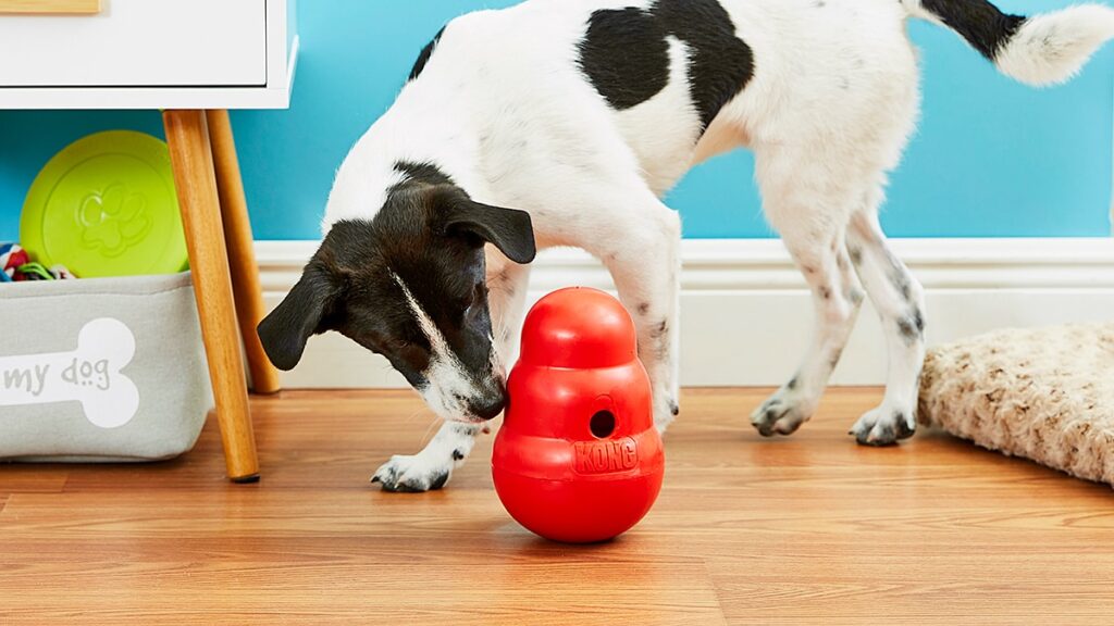 Nowak says, “To get started at home, collect five or six boxes of various sizes,”—Chewy boxes would be perfect for this! You should place them either lined up or scattered around a quiet room. You will only place the treat in one box, as Nowak explains, so that you do not contaminate the other boxes. You then introduce your dog to the treat in the box so they learn that they will get this treat for exploring the box. Nowak continues, “Once they get the idea, you can start hiding the food box among other boxes. As the dog gets good at finding it, you might need to distract them by tossing an empty box or hiding the food when they are out of the room.” You can also increase the difficultly by placing the treat in a food dispensing toy like the KONG Classic Dog Toy.