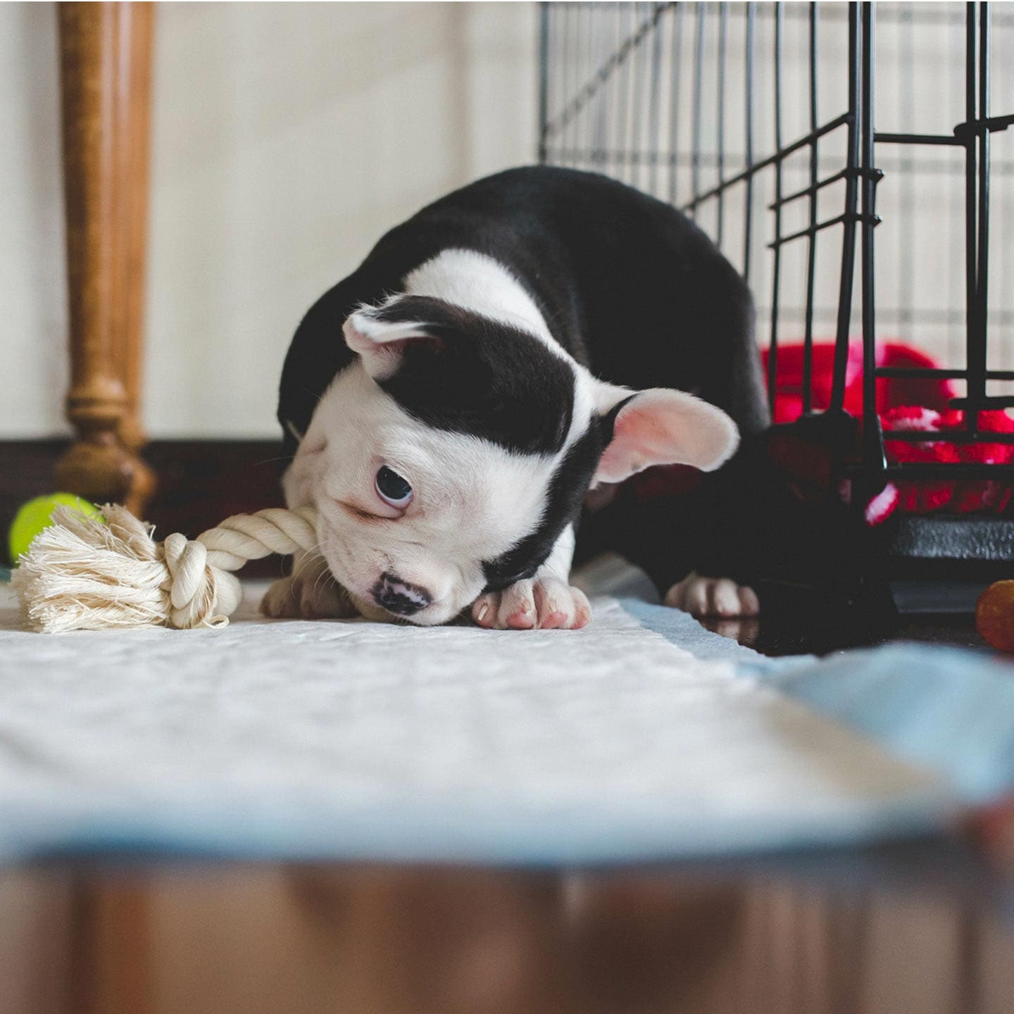 A crate should be just big enough for your puppy to stand up, turn around, and lie down—any larger, and they might use one end as a bathroom.