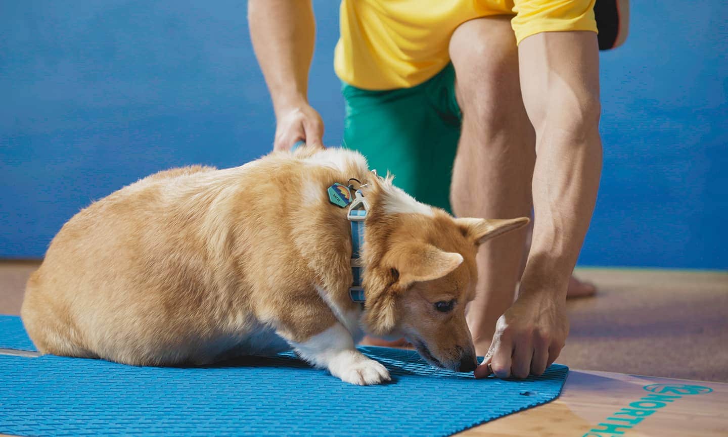 Say “hop off,” then lure your dog off the board and give a treat when all four paws are off the board. Over time, your dog will learn to associate “hop off” with stepping off the board.
